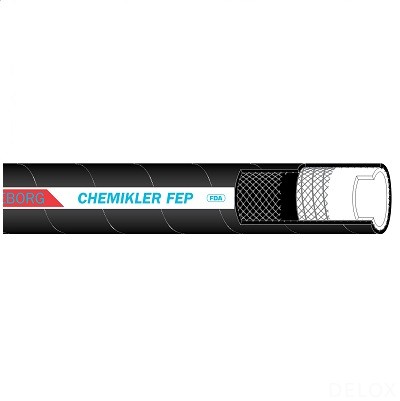 CKF內(nèi)層的FEP特氟龍材料,完全符合FDA食品級(jí)要求,無(wú)塑化劑和有毒害成分,可以使輸送的物料保持潔凈,其光滑程度使清洗變得簡(jiǎn)單,可承受150℃蒸汽,能夠輸送幾乎全部化學(xué)品和化學(xué)溶劑。外層橡膠抗靜電,具備耐化學(xué)性和耐老化性,完全無(wú)污染。