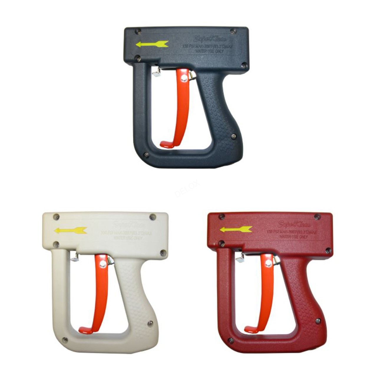 Superklean 的新型 Duraflow 水槍專為防止水槍不慎墜地意外噴射熱水保護(hù)工人安全生產(chǎn)而設(shè)計。獨(dú)特的外殼設(shè)計經(jīng) 久耐用,而且能在水槍不慎墜地時防止前扳機(jī)打開造成意外噴射熱水的工傷事故。不但工人使用更安全,而且水槍手 柄外形設(shè)計符合人體工程學(xué),手感非常舒適。 有多種噴射水形是這款 Duraflow 水槍的特點(diǎn)之一,從扇形到實心水柱都可調(diào)節(jié)。該款水槍同時還有扳機(jī)鎖定功能, 能將水槍鎖定在任何噴射水形,長時間使用能大幅度降低工人手的疲勞強(qiáng)度。水槍具有自動關(guān)閉的功能,釋放扳機(jī)后 即刻停止出水。具有高效和節(jié)水的效應(yīng)。 這款 Duraflow 水槍采用 300 系列不銹鋼,重量為 1.53 鎊(約 0.69 公斤)。 DURAFLOW 高效型(大流量)水槍 DH150S-DB Duraflow 高效型(大流量)300 系列不銹鋼水槍,深藍(lán)色外殼 DH150S-R Duraflow 高效型(大流量)300 系列水槍,紅色外殼 DH150S-W Duraflow 高效型(大流量)300 系列水槍,白色外殼