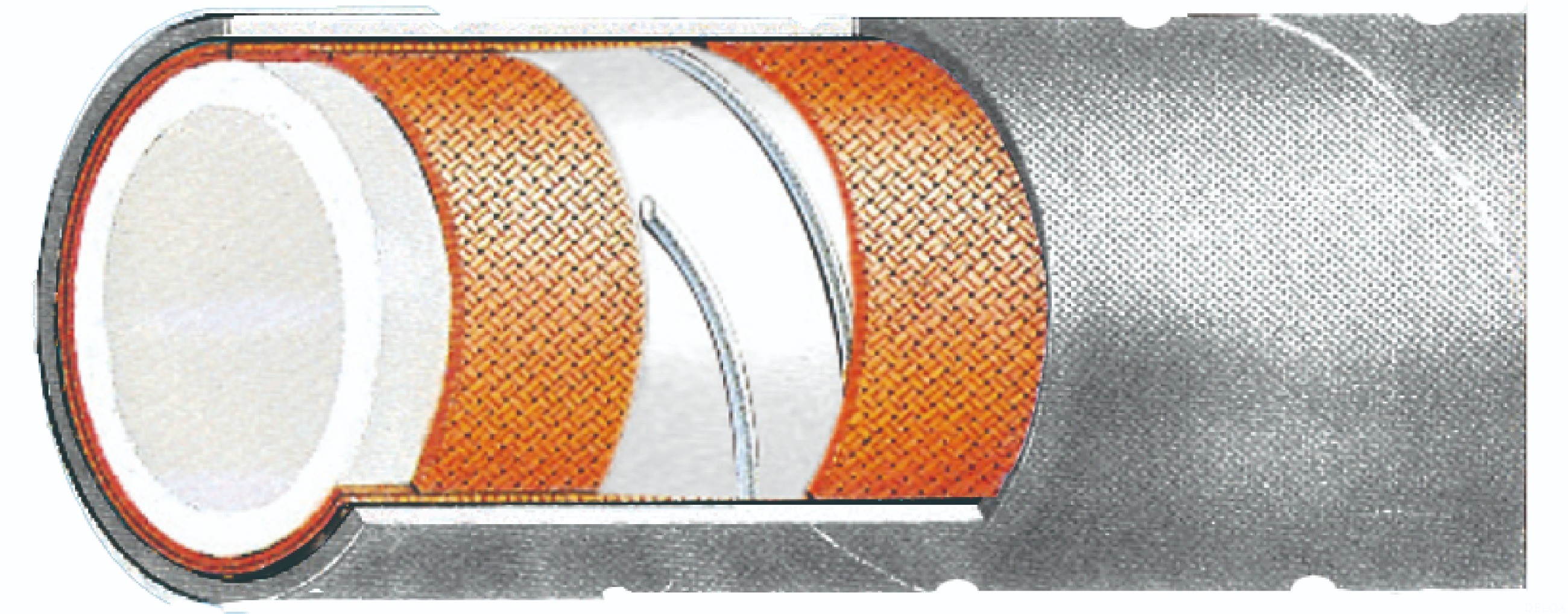 外層:灰色耐磨,耐老化合成橡膠,特殊設(shè)計的波紋結(jié)構(gòu),增強柔韌性。