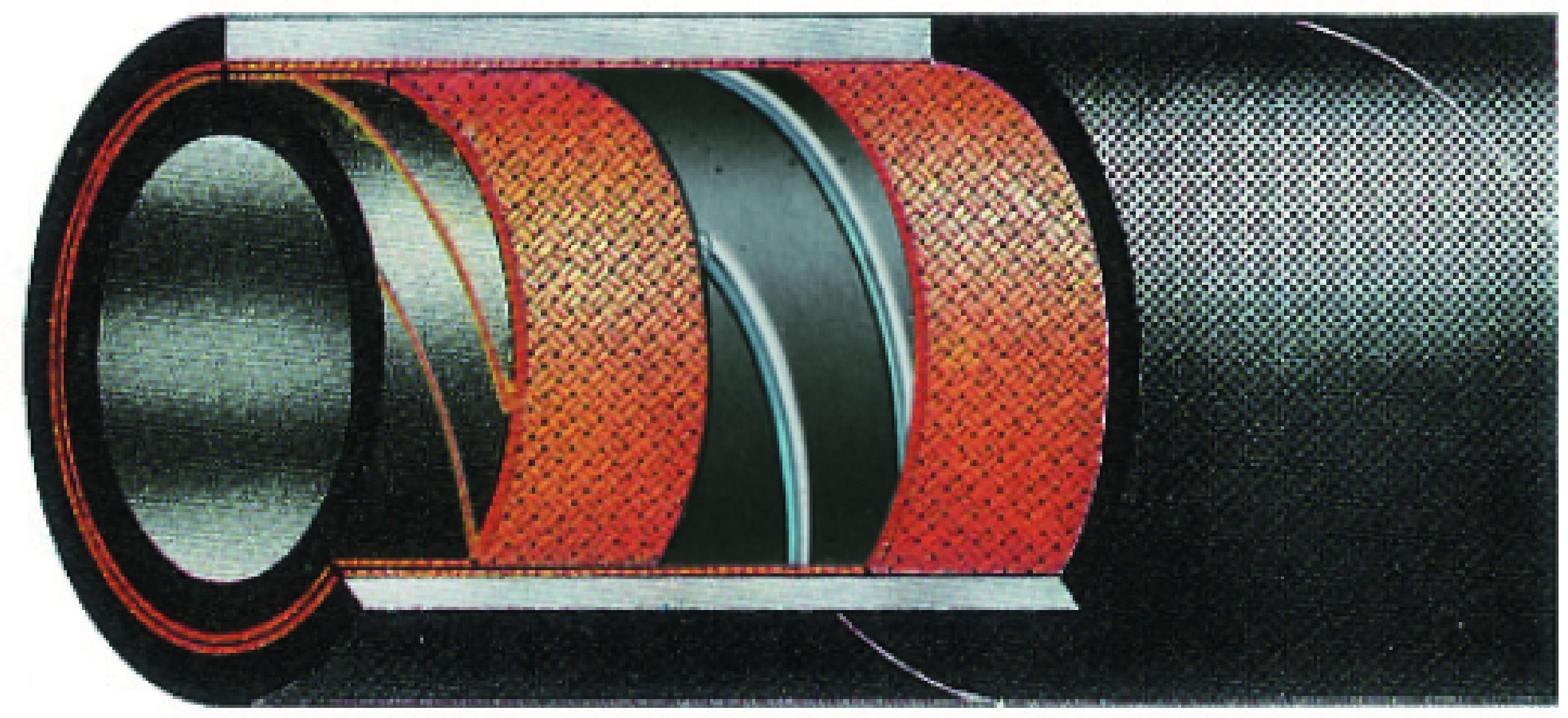 增強層:高強度纖維編織網(wǎng)和雙螺旋鋼絲,內(nèi)植雙銅絲可用于接地。